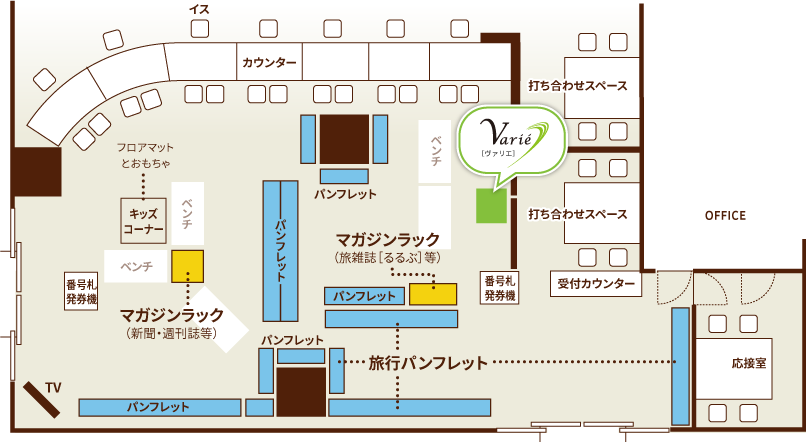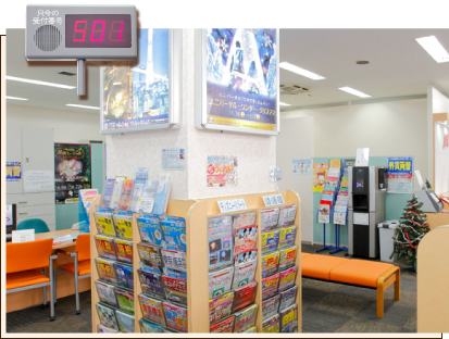 ていねいな応対を心がけるほど、次のお客様を待たせてしまうジレンマをなんとかしたい、という思いで、ウェイティングスペースには工夫を凝らしています。パーテーションにはパンフレット類を立てかけ、ウエイティングスペースには雑誌を置くなどして、お客様にリラックスして順番をお待ちいただくようにしています。あわせてお茶をお出ししたい…と考えているときに、近くの信用金庫でホシザキの給茶機を見つけたんです。