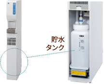 キャビネットに内蔵された貯水タンクから、自動的に給水されます。給・排水の配管工事が必要ありませんので設置も簡単です。